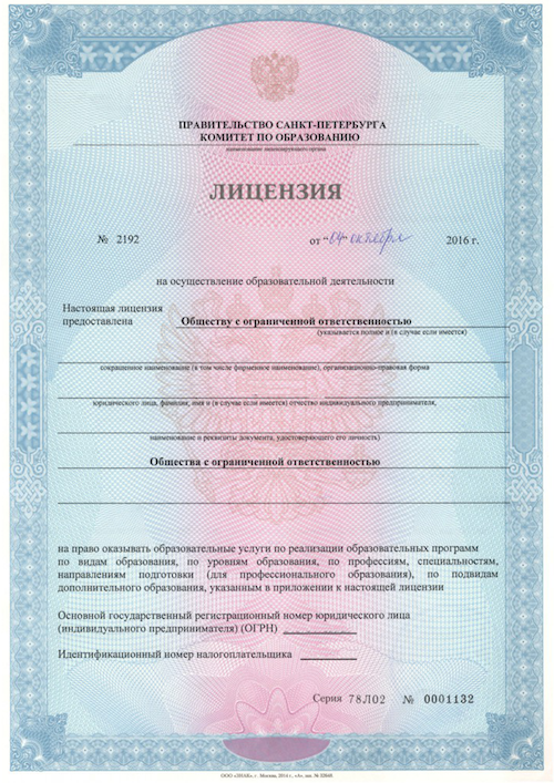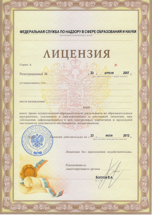 Лицензия на осуществление образовательной деятельности по образовательным программам, указанным в приложении(ях) к настоящей лицензии.