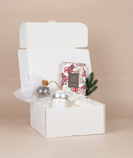 • коробка из белого картона 20х20х10 см (брендируется в зависимости от тиража)