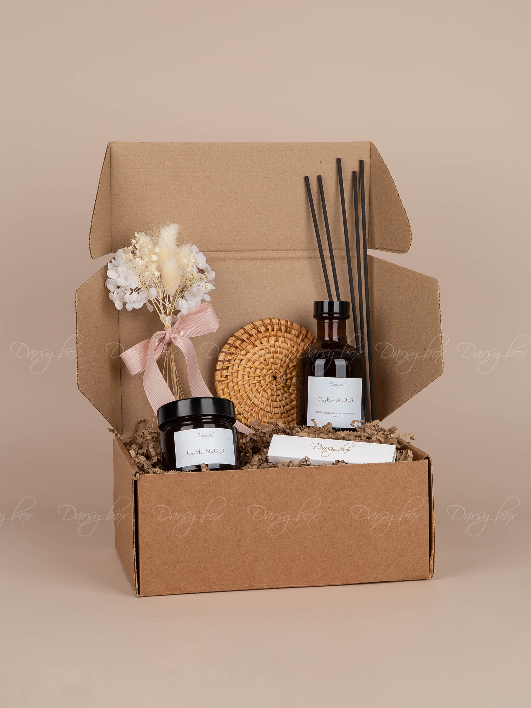 Интернет-магазин «Darsybox» предлагает своим клиентам возможность индивидуально разработать подарочный набор с учетом интересов и предпочтений получателя, пожеланий клиента, а также особенностей мероприятия.