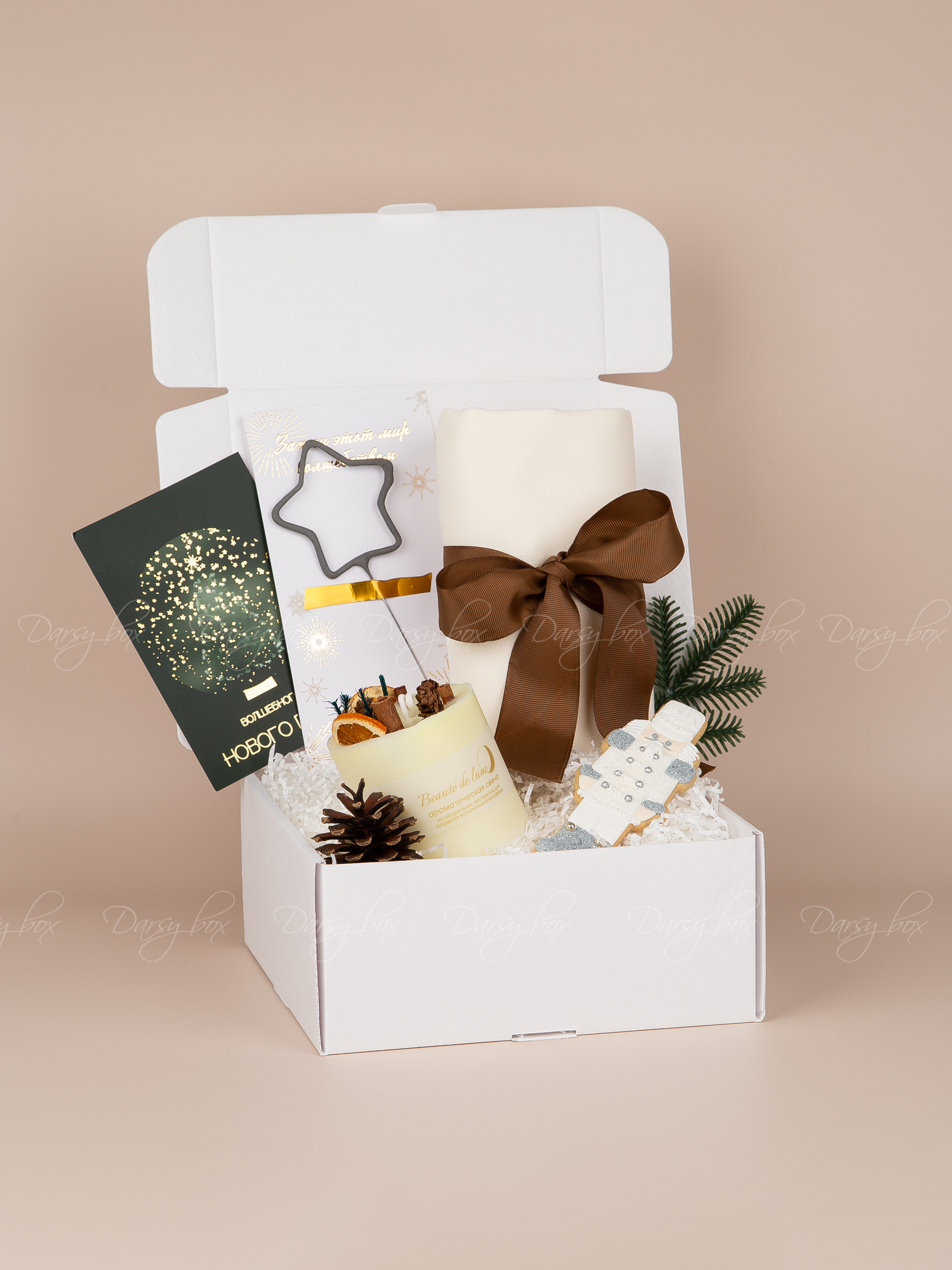 • коробка из белого картона 20х20х10 см (брендируется в зависимости от тиража)