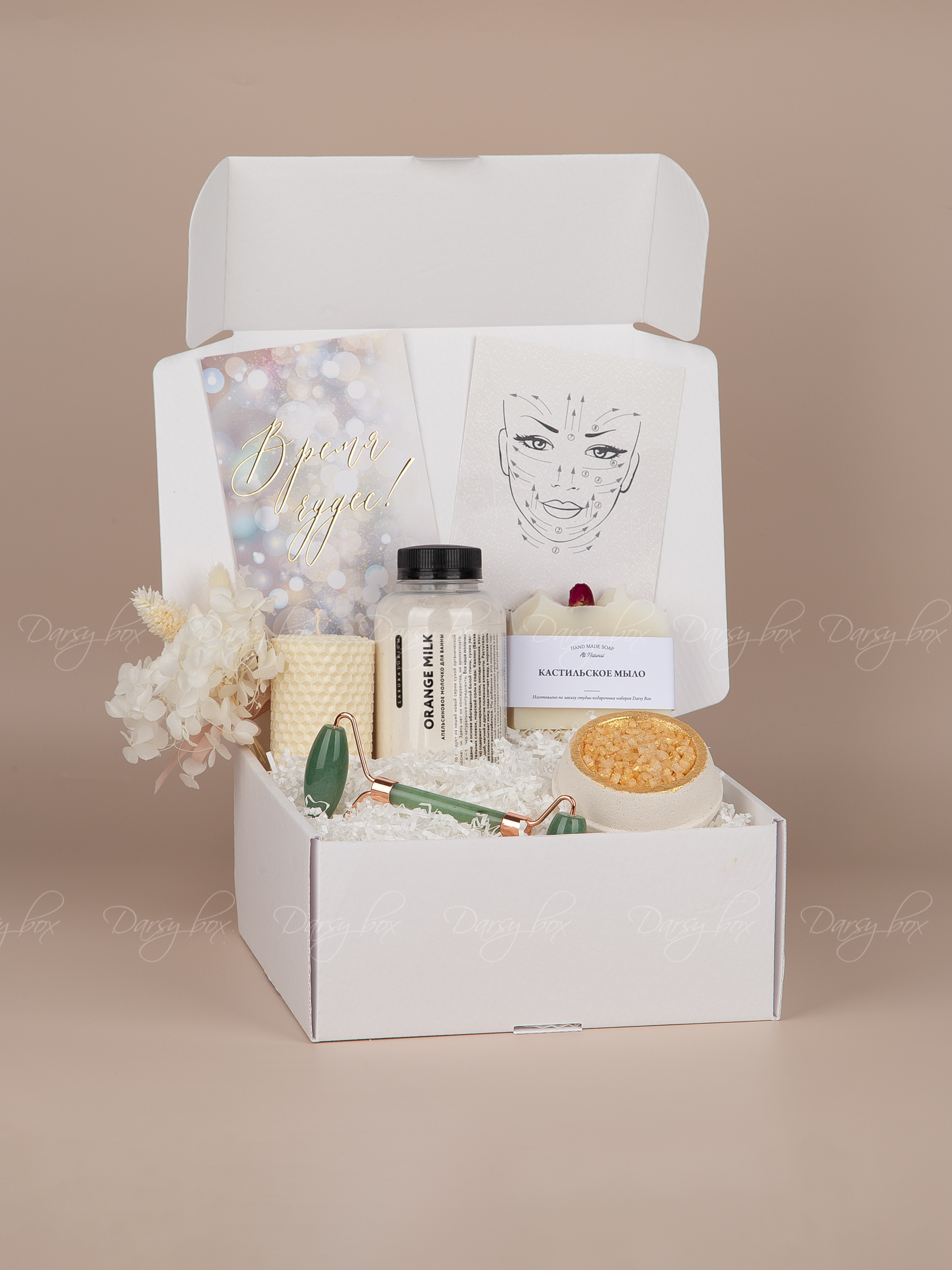 Интернет-магазин «Darsybox» предлагает своим клиентам возможность индивидуально разработать подарочный набор с учетом интересов и предпочтений получателя, пожеланий клиента, а также особенностей мероприятия.