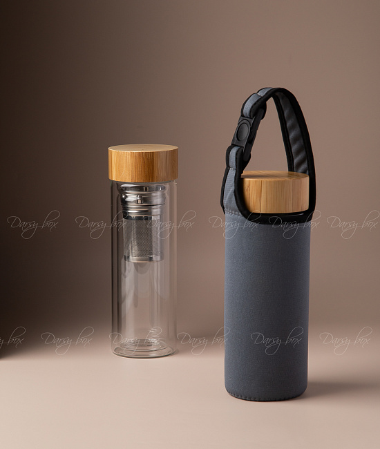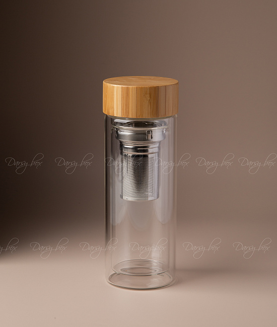 • бутылка стеклянная для воды, чая с бамбуковой крышкой и ситом внутри (брендируется)