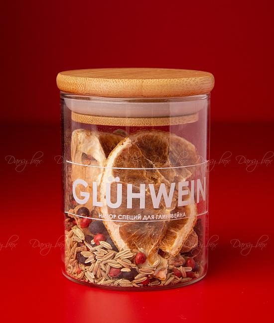 • специи для глинтвейна в стеклянной банке с бамбуковой крышкой