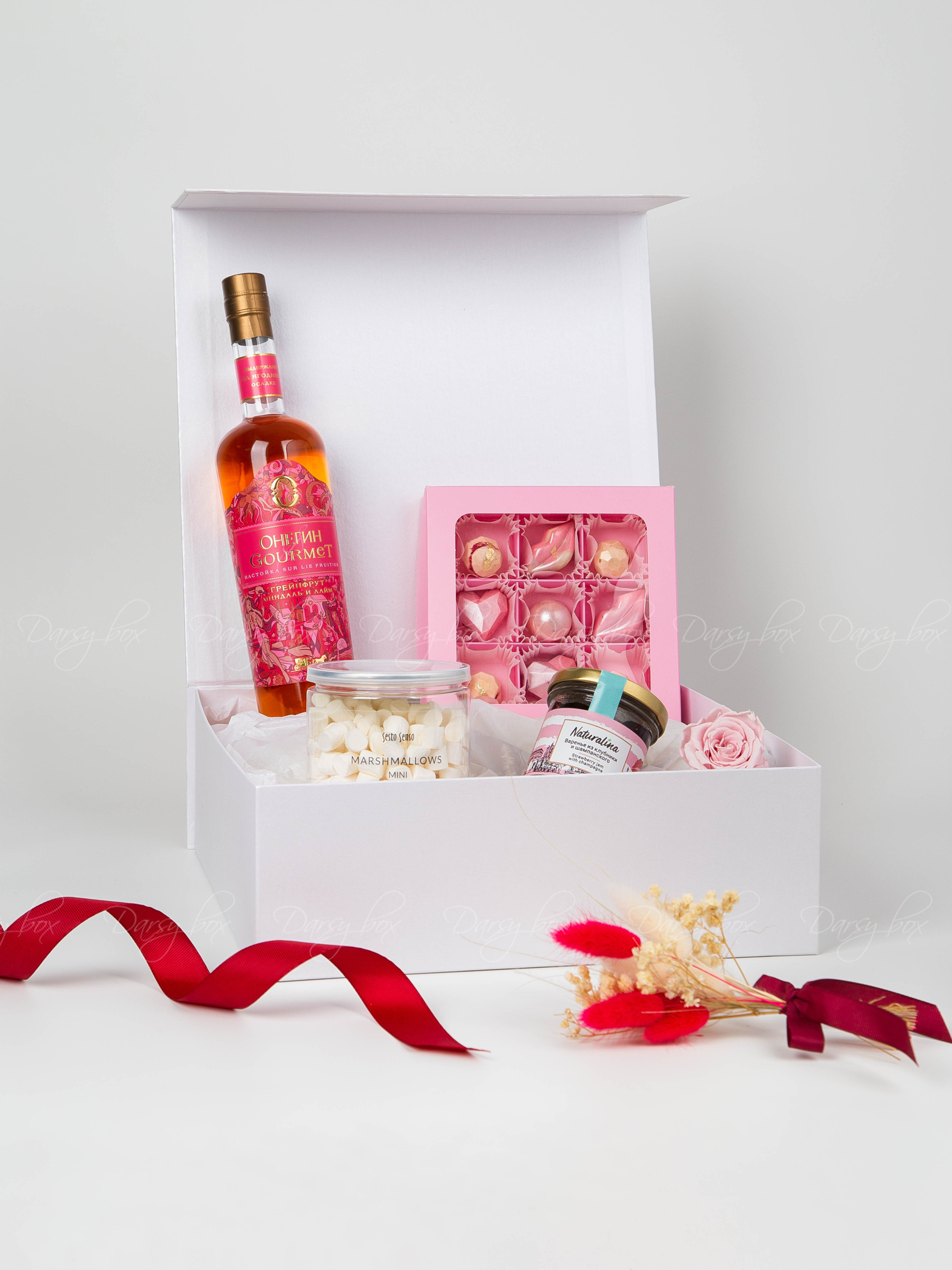 Интернет-магазин «Darsybox» предлагает своим клиентам возможность индивидуально разработать подарочный набор с учетом интересов и предпочтений получателя, пожеланий клиента, а также особенностей мероприятия.