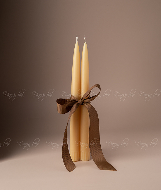 • столовые свечи, которые сгорают равномерно и не текут (состав: соевый воск, парафин) высота 25 см, время горения 6 часов - 2 шт