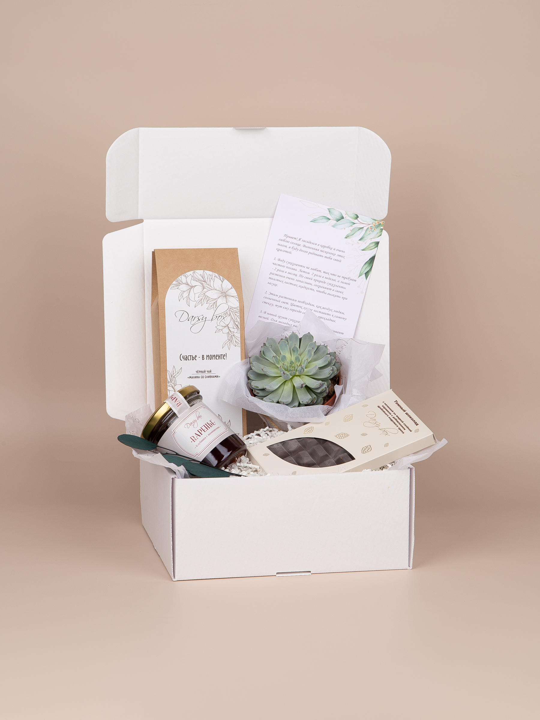 Интернет-магазин «Darsybox» предлагает своим клиентам возможность индивидуально разработать подарочный набор с учетом интересов и предпочтений получателя, пожеланий клиента, а также особенностей мероприятия.