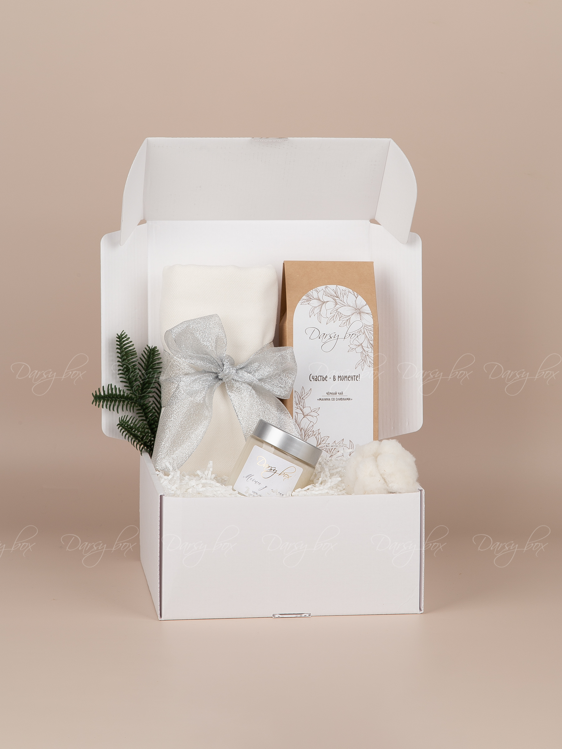 • белая картонная коробка 20х20х10 см (брендируется в зависимости от тиража)