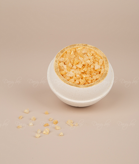 • бомбочка для ванны с золотым шиммером и солью, увлажнающими маслами