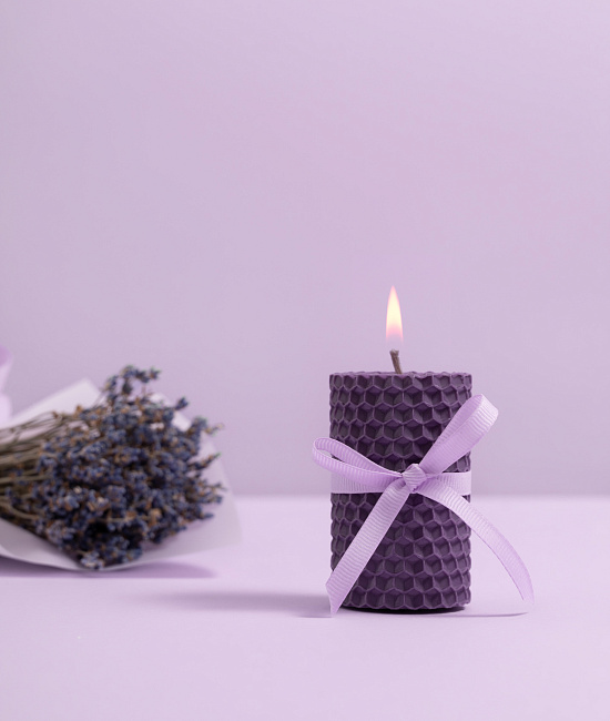• свеча из медовой вощины лавандового цвета (обвязана лентой)