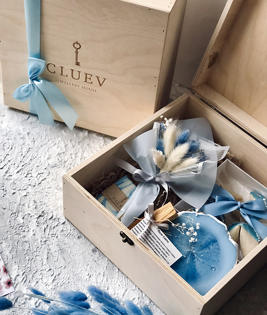 С учетом полученных сведений наш сотрудник составит для вас индивидуальный стильный подарочный набор.