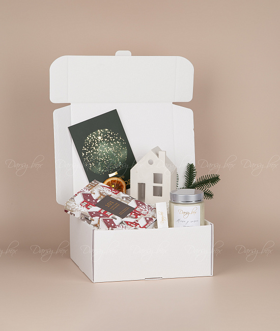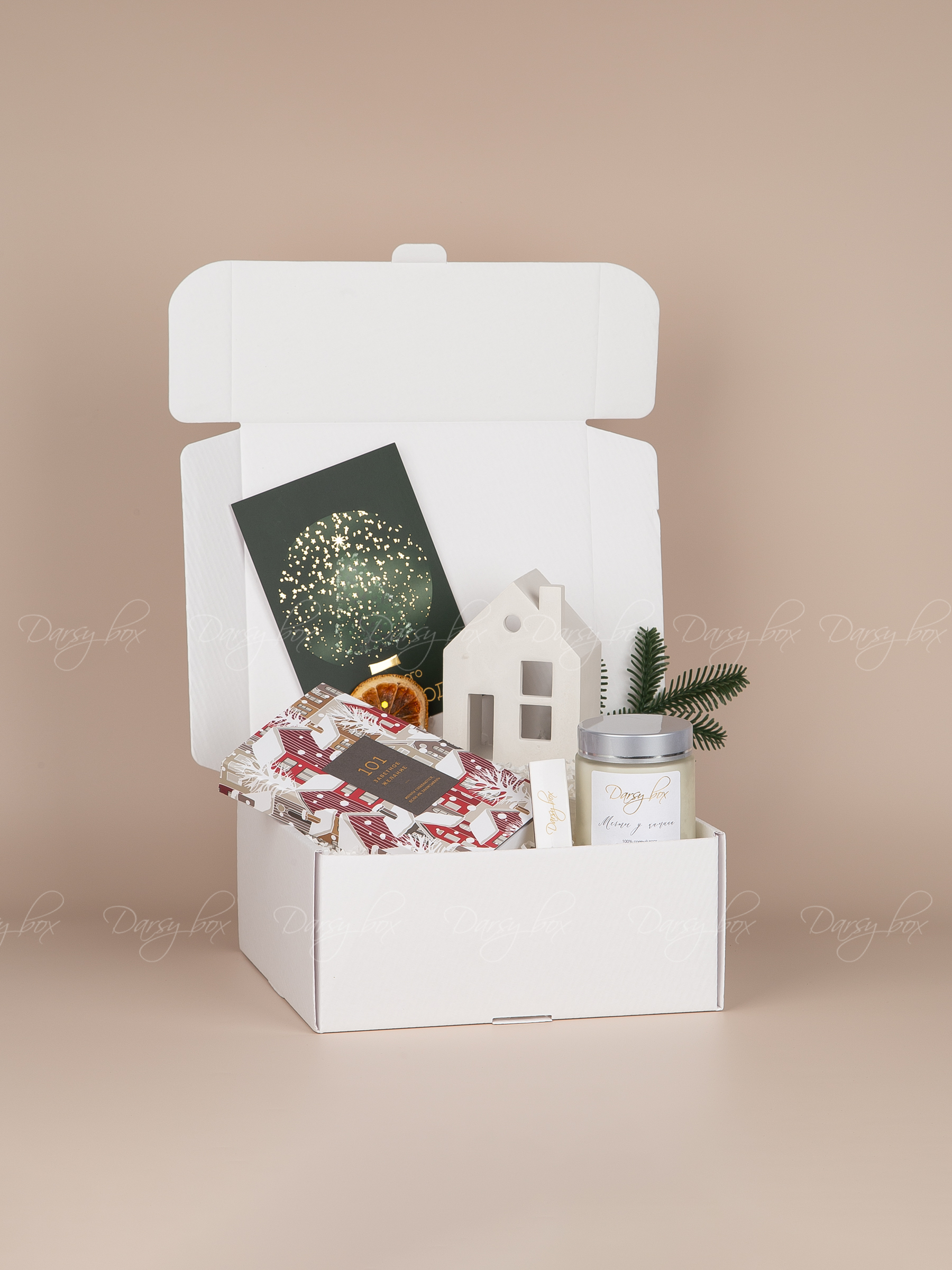• белая картонная коробка 20х20х10 см (брендируется в зависимости от тиража)