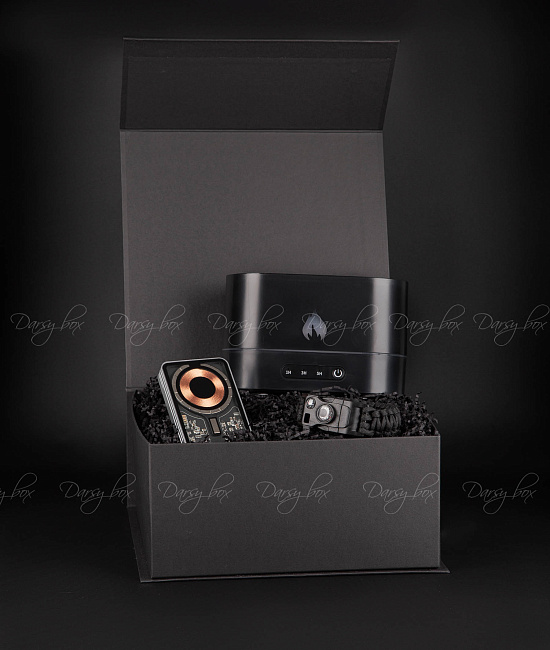 • Коробка из дизайнерского картона на магните 26х25х10 см (брендируется)