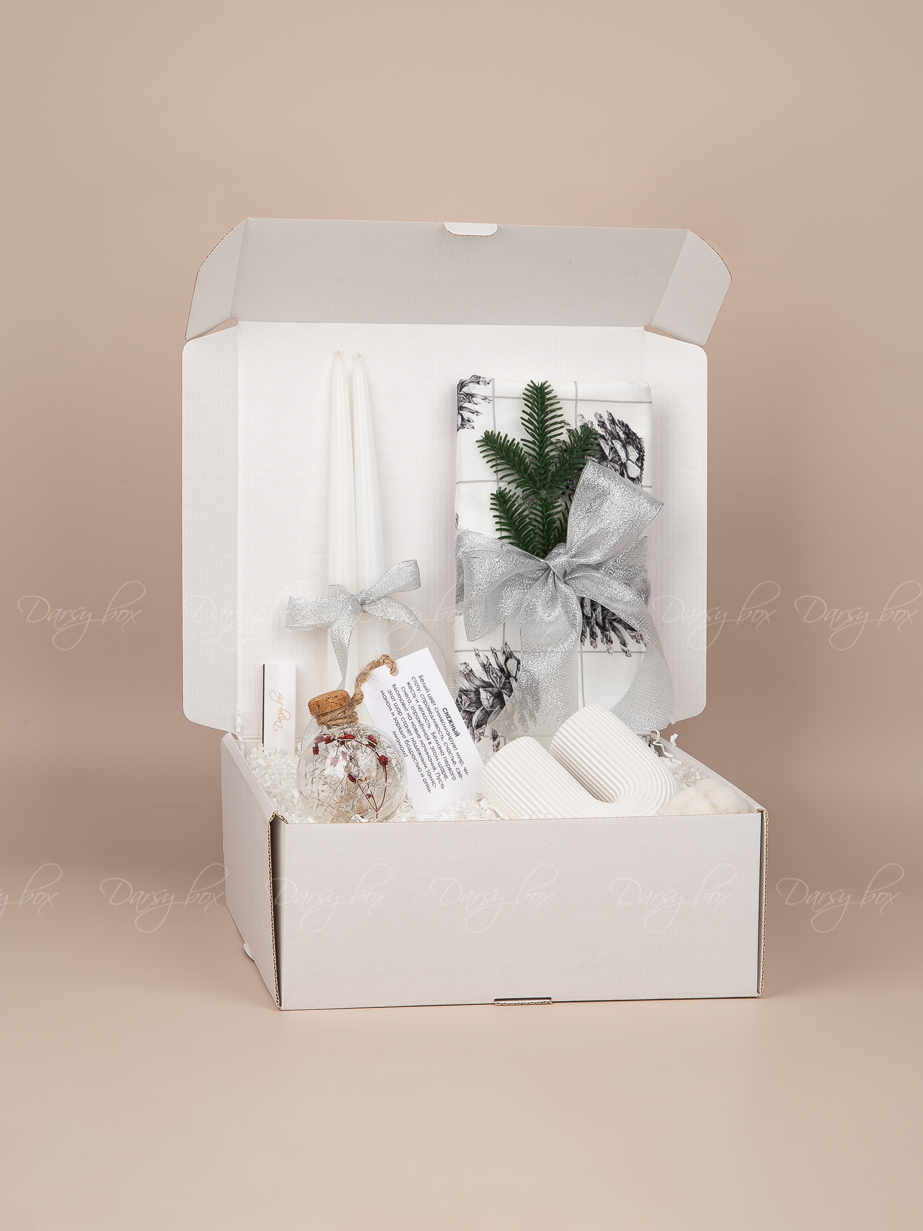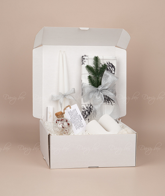 • коробка картонная белого цвета 25х25х10 см (брендируется в зависимости от тиража)