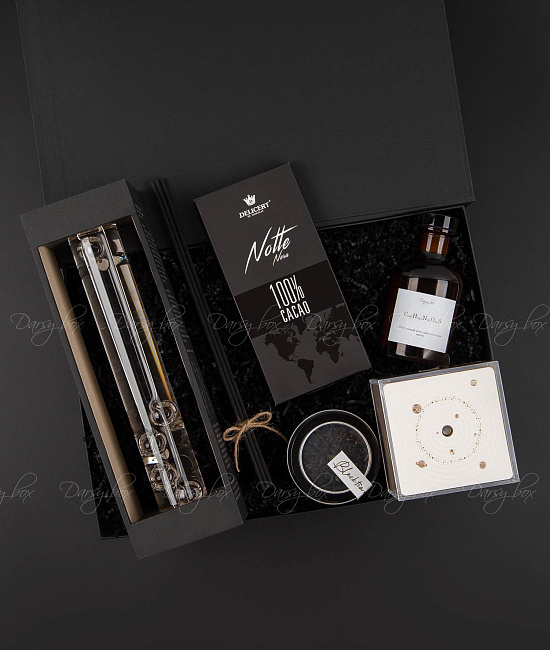 С учетом полученных сведений наш сотрудник составит для вас индивидуальный стильный подарочный набор.