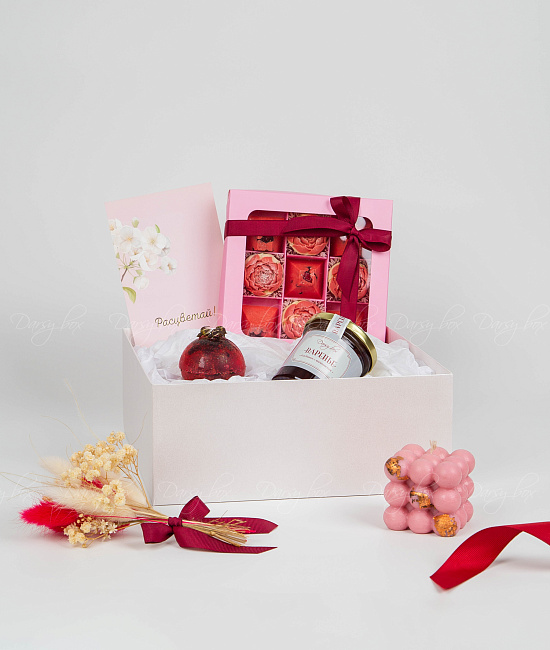 Интернет-магазин «Darsybox» предлагает своим клиентам возможность индивидуально разработать подарочный набор с учетом интересов и предпочтений получателя, пожеланий клиента, а также особенностей мероприятия.