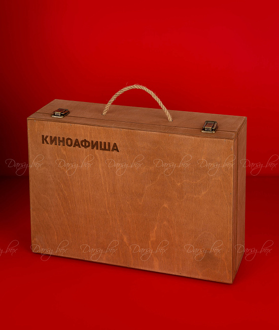 • Чемодан из дерева с джутовой ручкой коричневый  (гравировка логотипа) 27х39х13