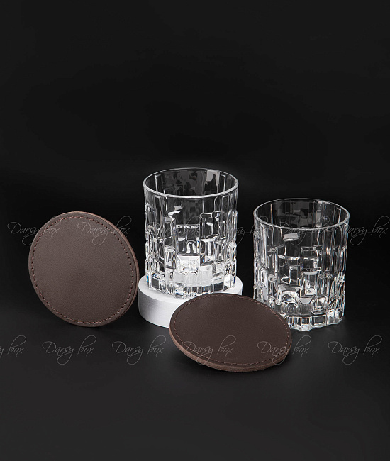 • Костеры из кожи ручной работы (тиснение логотипа), диаметр – 10 см