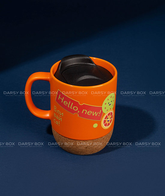 • Кружка Corky, керамика с крышкой и пробковым дном, цвет - оранжевый, объем - 320 мл (брендируется от 50 штук)