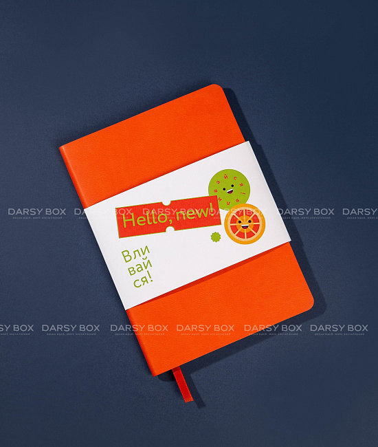 • Блокнот, обложка - искусственная кожа, цвет обложки - оранжевый, формат - А5, цвет листов - белый в клетку