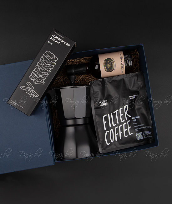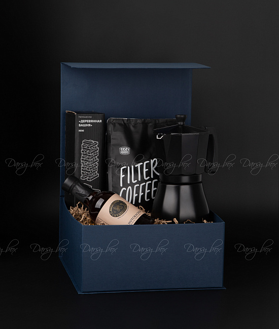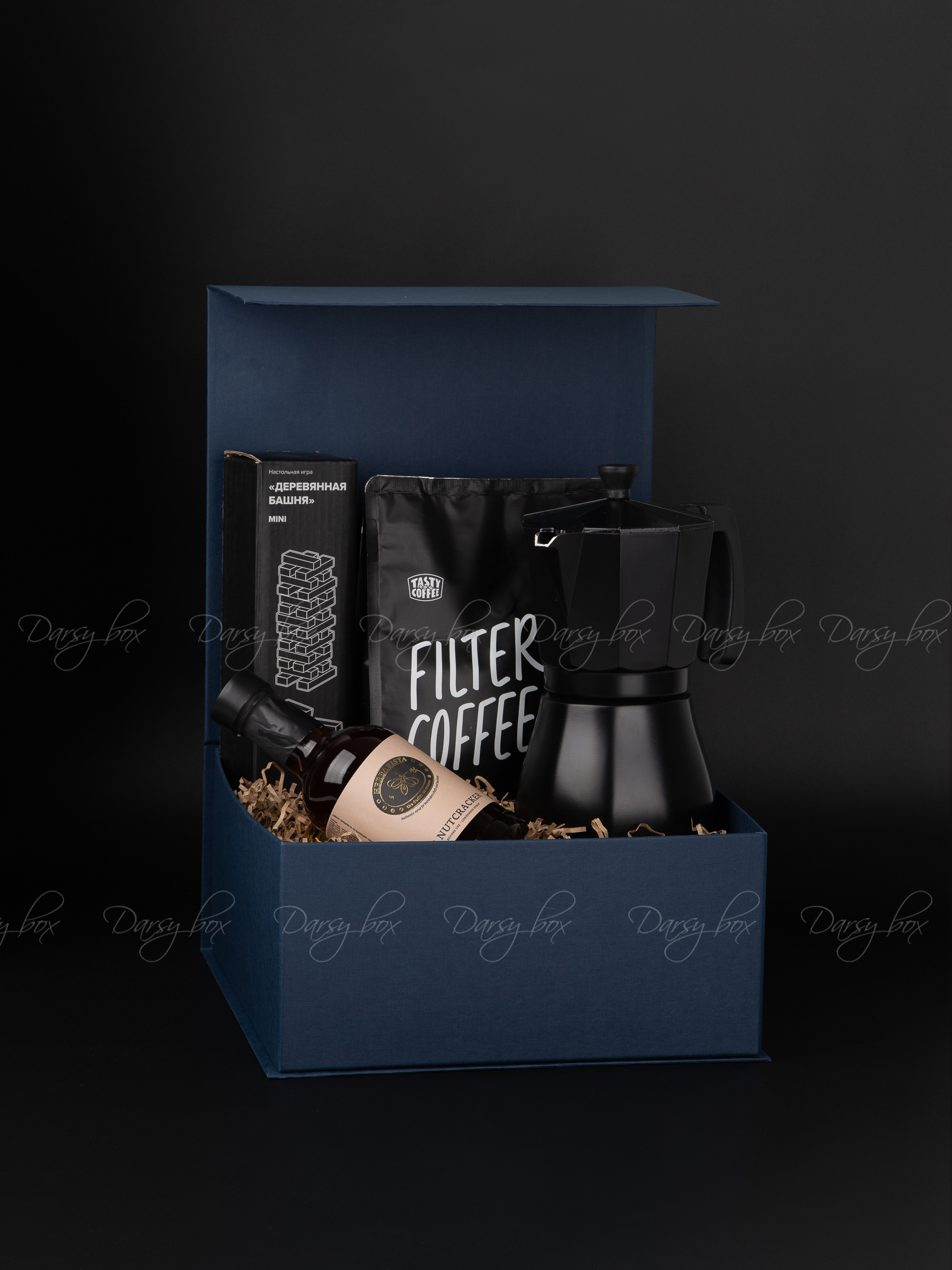 • коробка из картона на магните (брендируется) 26х25х11. Возможно собрать набор с кофеваркой серебристой (они дешевле по стоимости)