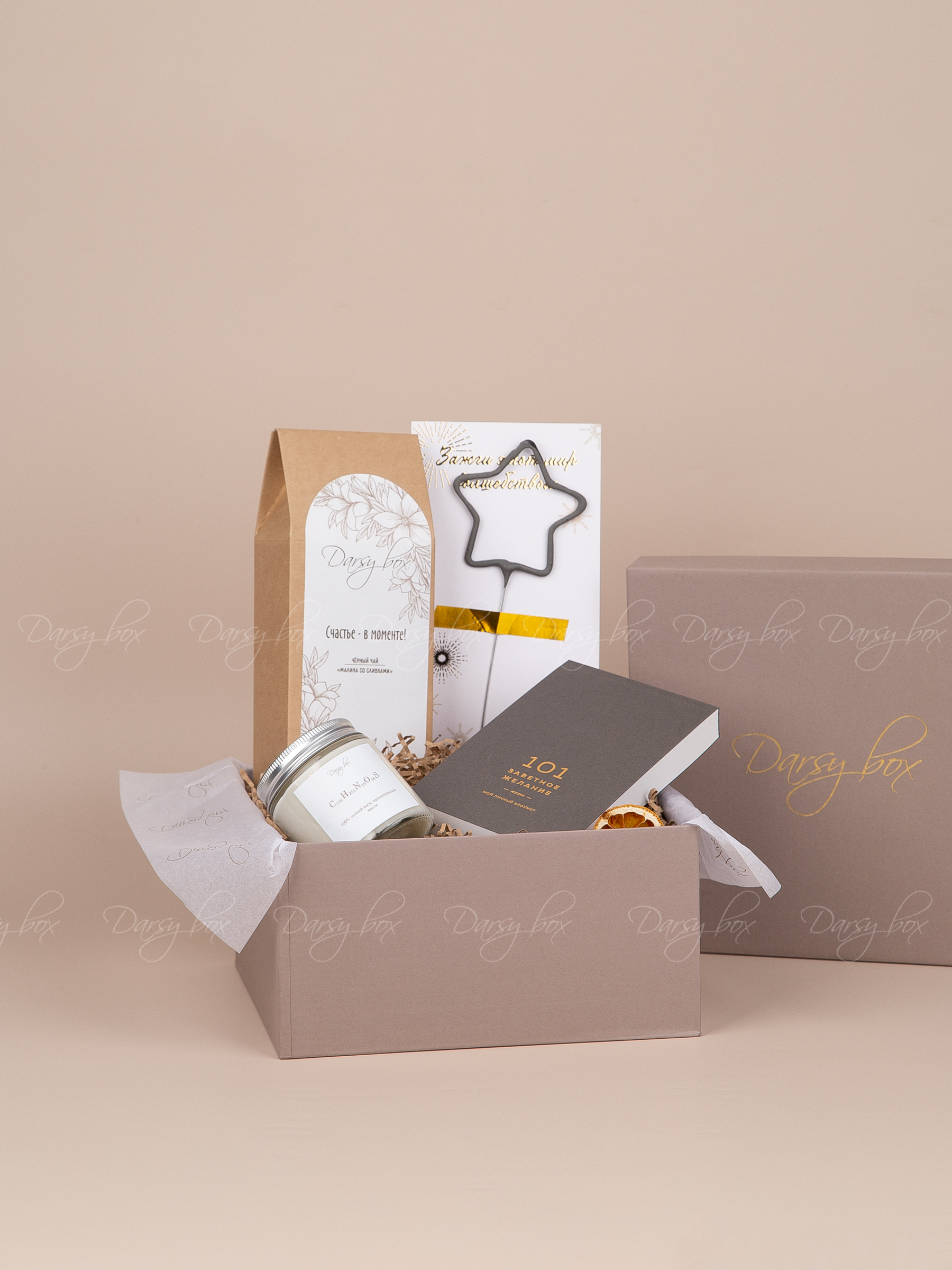 Интернет-магазин «Darsybox» предлагает своим клиентам возможность индивидуально разработать подарочный набор с учетом интересов и предпочтений получателя, пожеланий клиента, а также особенностей мероприятия.