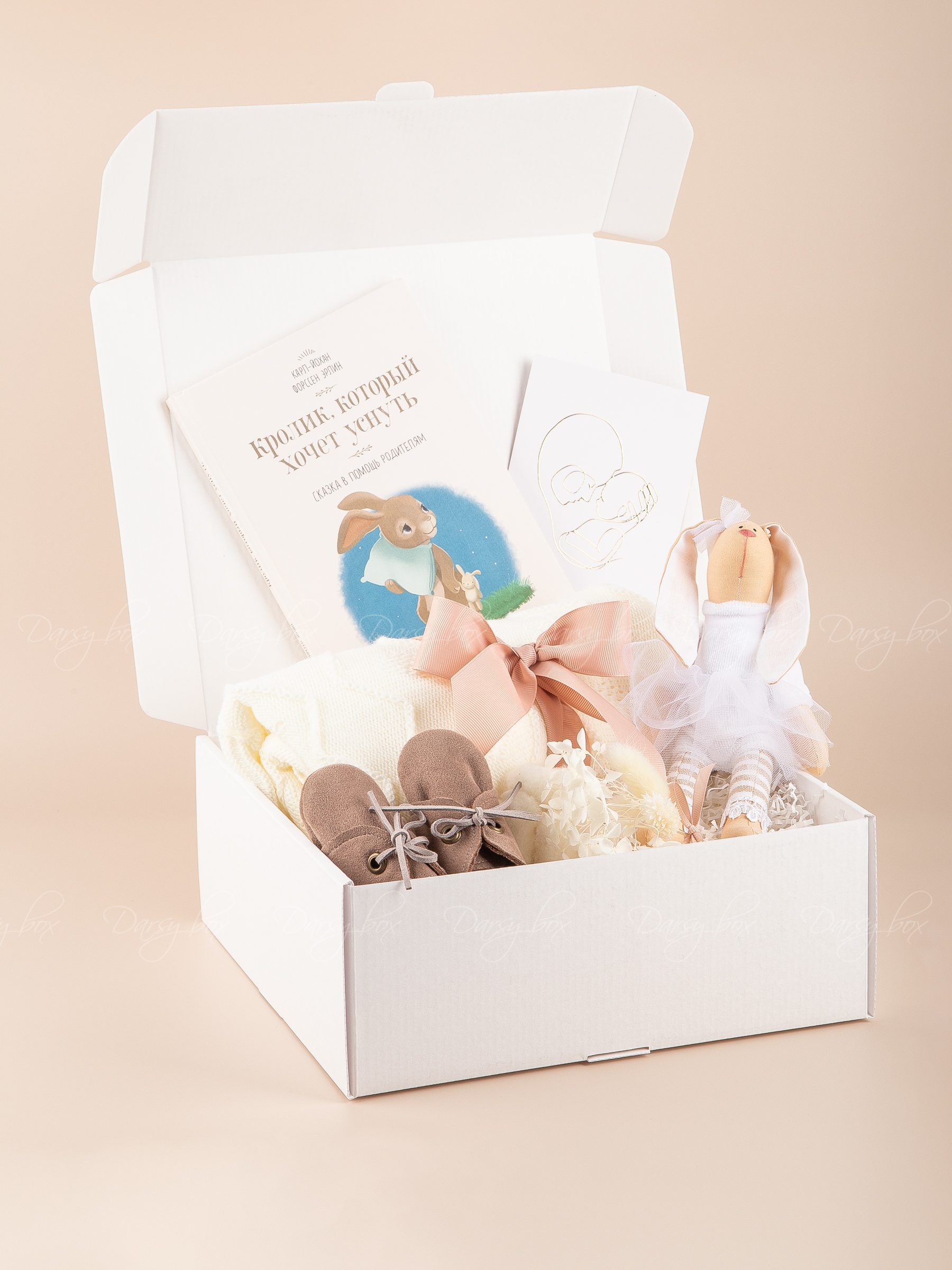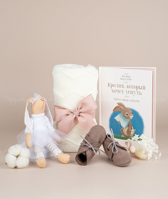 • пинетки ручной работы (замшевые)• книга "Кролик, который хочет уснуть"