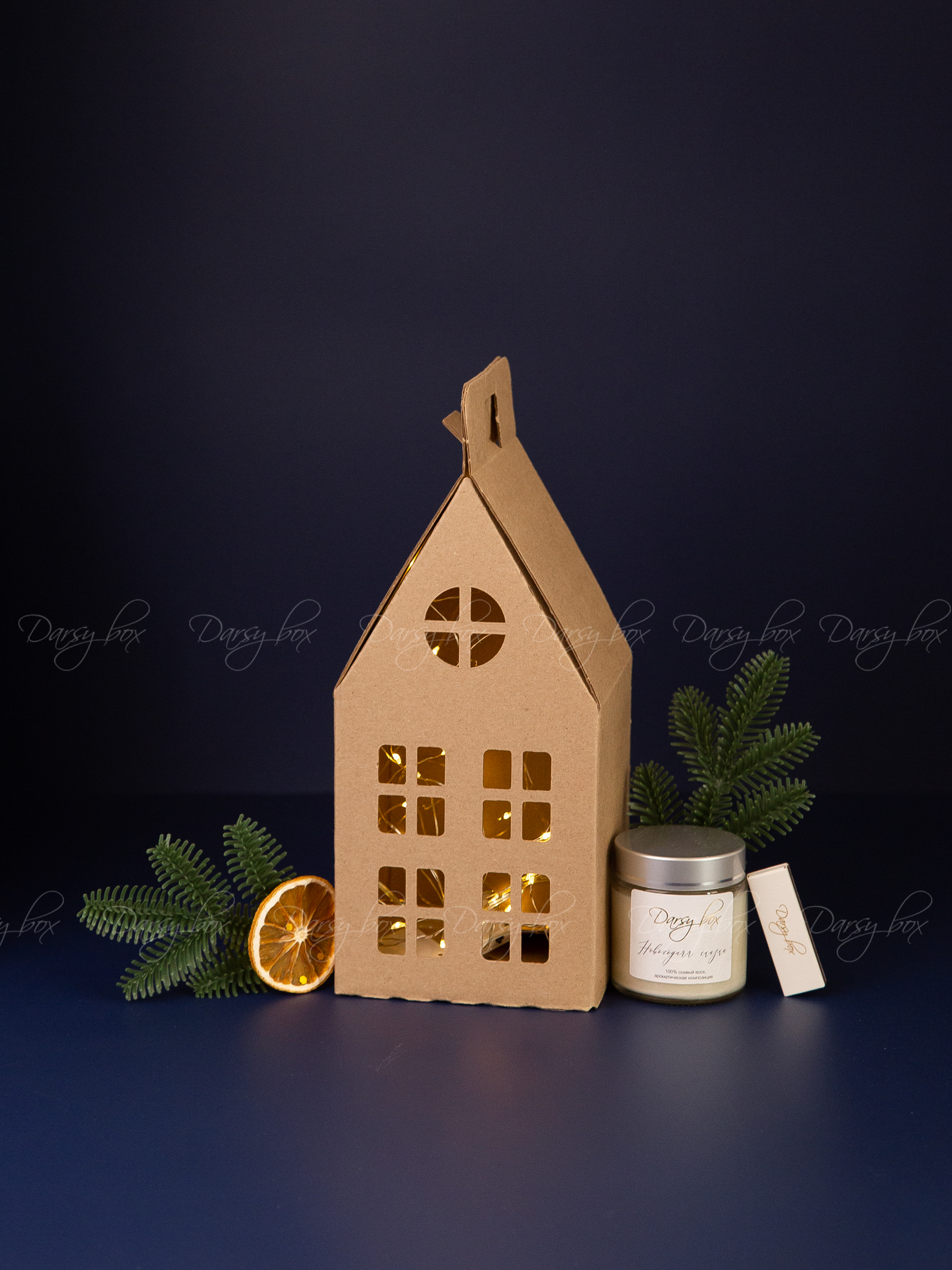 • картонная коробка "Домик" (13х23х11,5 см) (брендируется в зависимости от тиража)